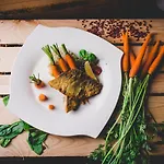 Gli ospiti sono invitati al ristorante Karmell a godere del cibo squisito.